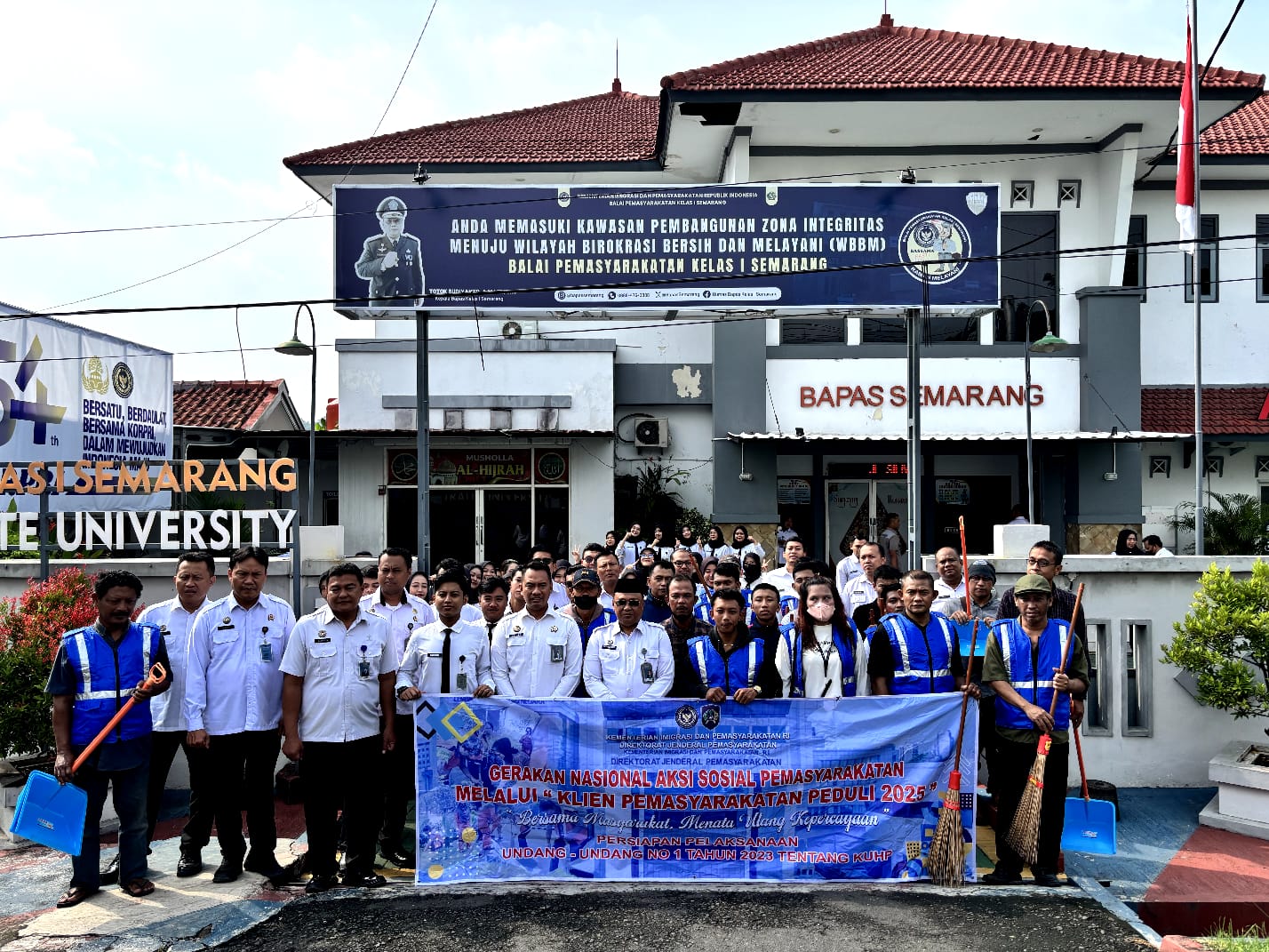 SEMARANG – Daily-postindonesia.my.id|Balai Pemasyarakatan (Bapas) Kelas I Semarang secara rutin menggelar aksi sosial bertajuk “Aksi Sosial Klien Balai Pemasyarakatan Peduli” yang dirangkaikan dengan program Bimbingan Kepribadian dan Kemandirian bagi klien Pemasyarakatan. Kegiatan ini merupakan bagian dari Gerakan Nasional Aksi Sosial Pemasyarakatan dalam rangka menyambut penerapan Undang-Undang Nomor 1 Tahun 2023 tentang Kitab Undang-Undang Hukum Pidana (KUHP) yang baru tanggal 2 Januari 2026 mendatang, Rabu (10/12/2025).