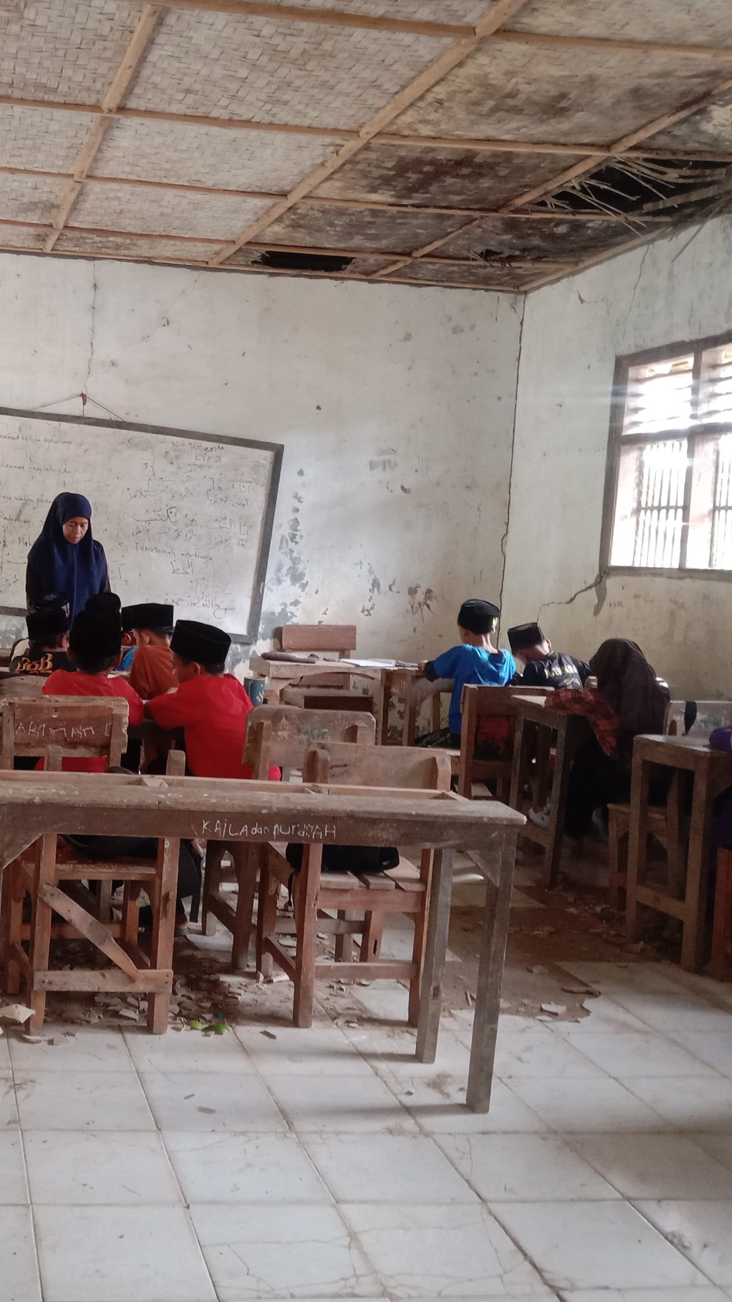Kondisi fisik bangunan madrasah saat ini memerlukan perhatian serius. Atap bangunan bocor, lantai keramik rusak hingga menjadi tanah, dan plafon dalam kondisi rapuh serta berpotensi ambruk. Keadaan tersebut tidak hanya mengganggu kenyamanan belajar, tetapi juga membahayakan keselamatan siswa.
