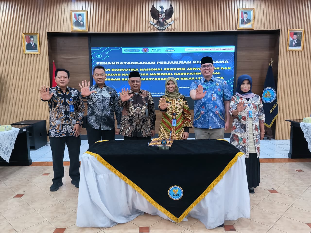 SEMARANG-Dailypost-indonesia.my.id| Kepala Balai Pemasyarakatan (Bapas) Kelas I Semarang Totok Budiyanto menandatangani perjanjian kerjasama dengan Kepala Badan Narkotika Nasional Provinsi (BNNP) Jawa Tengah Toton Rasyid dan Kepala Badan Narkotika Nasional Kabupaten (BNNK) Kendal Anna Setiywati, di Kantor BNNP Jawa Tengah, Jum’at (30/01)